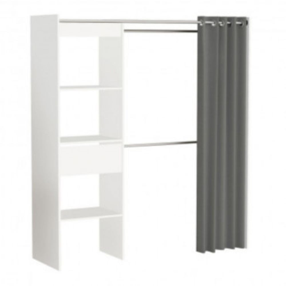 Garderobna omara iz linije otroške in mladinske sobe je narejena v skandinavskemu stilu. Dvignjene stožčaste nogice in robovi omare so v lesnemu dekorju. Omara je narejena iz robljenega iverala v prevladujoči beli barvi, ki jo dopolnjuje temno siva barva vratc predalov. Vratca imajo polkrožne izreze na robovih, ki nadomeščajo ročaje, hkrati pa predstavljajo lep dizajnerski dodatek. Omara ima tri notranje nastavljive police in eno obešalno letev. Možnih je več variant notranje razporeditve polic in letve. Desno spodaj se nahajata dva predala, ki imata kroglična vodila.