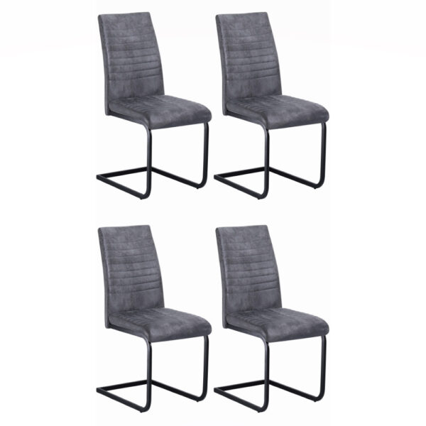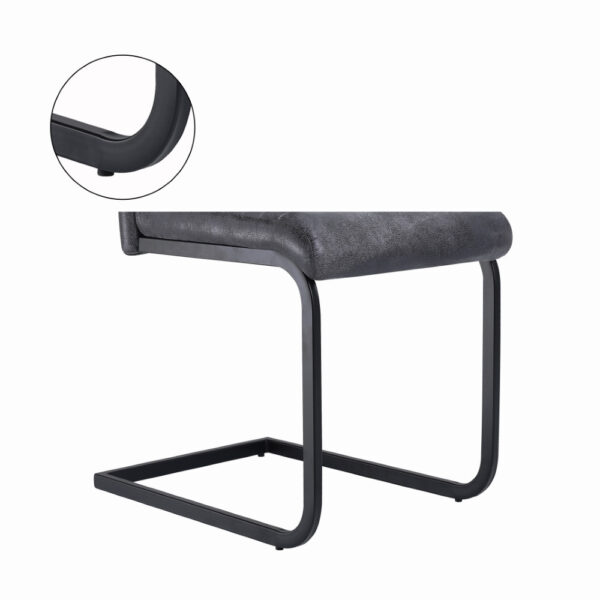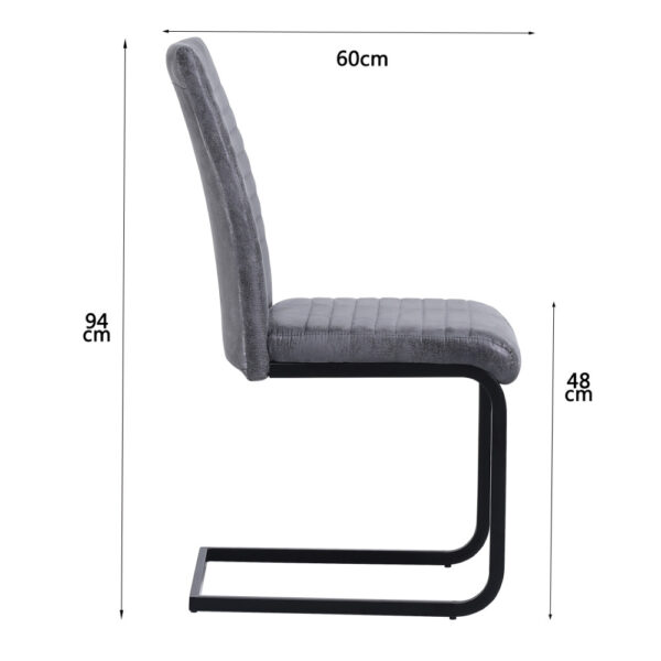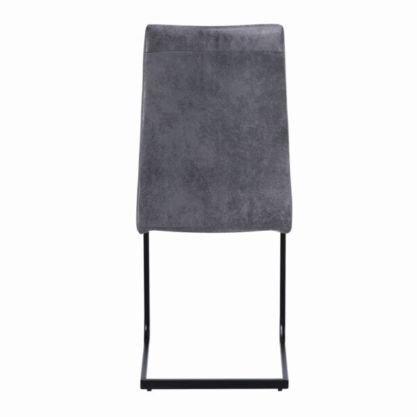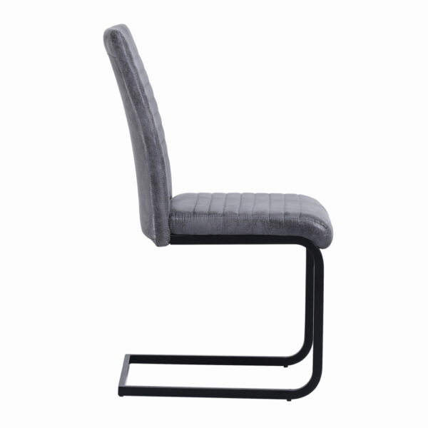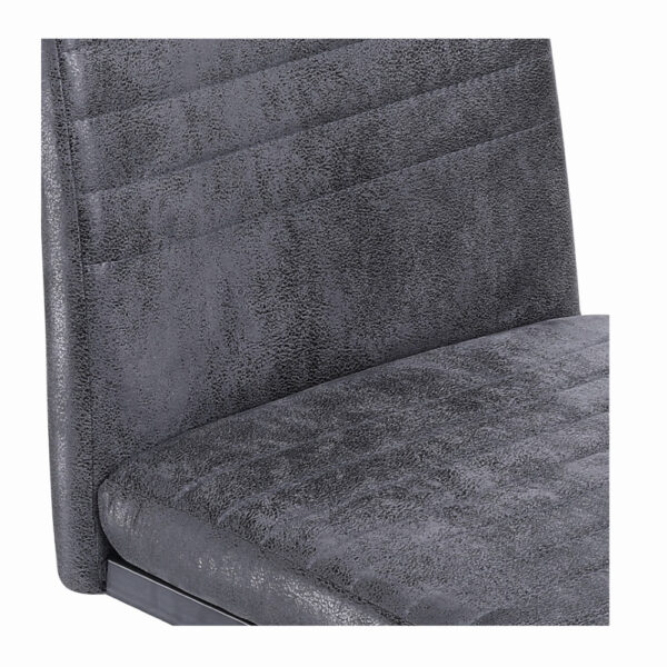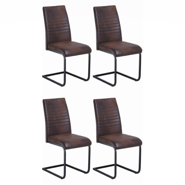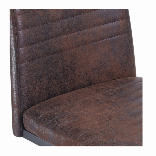 Preprost jedilniški stol, ki se bo odlično podal v vašo jedilnico. Oblazinjen je s kvalitetno tkanino mikrofibra v rjavi ali sivi barvi. Kovinsko podnožje v obliki sank, je prašno lakirano v črno barvo. Višina sedišča je 48 cm. Maksimalna nosilnost stola je 120 kg.