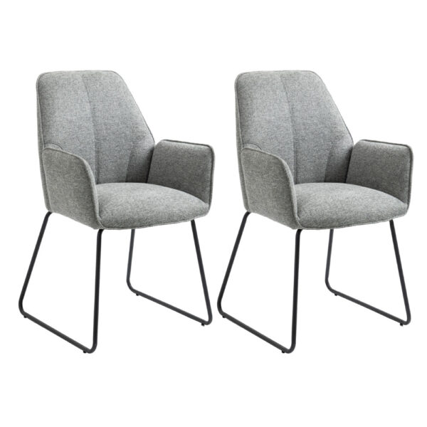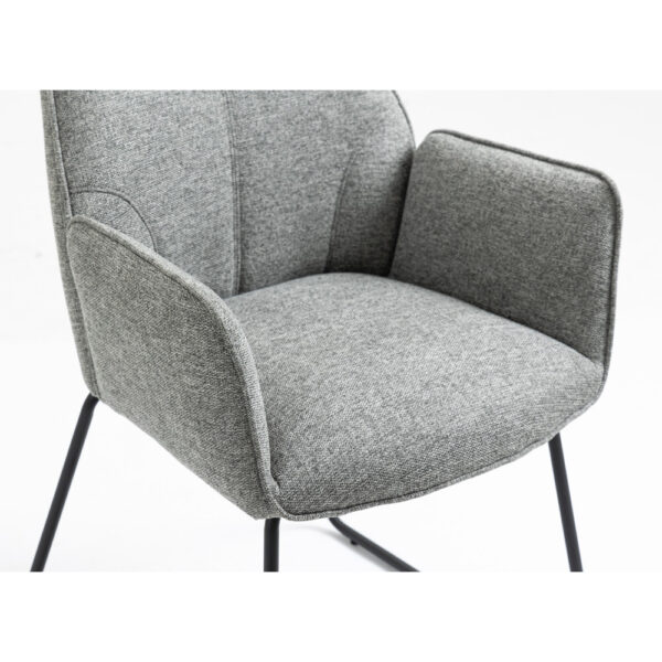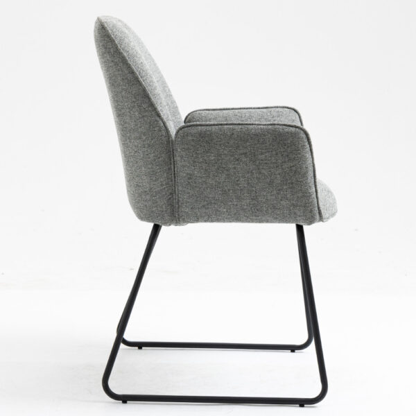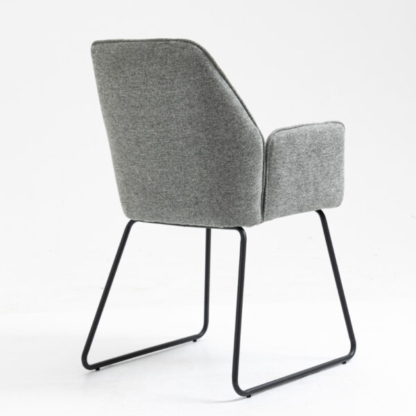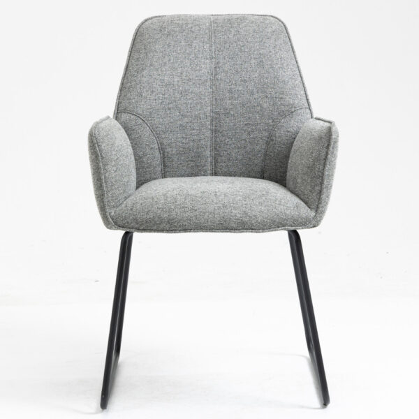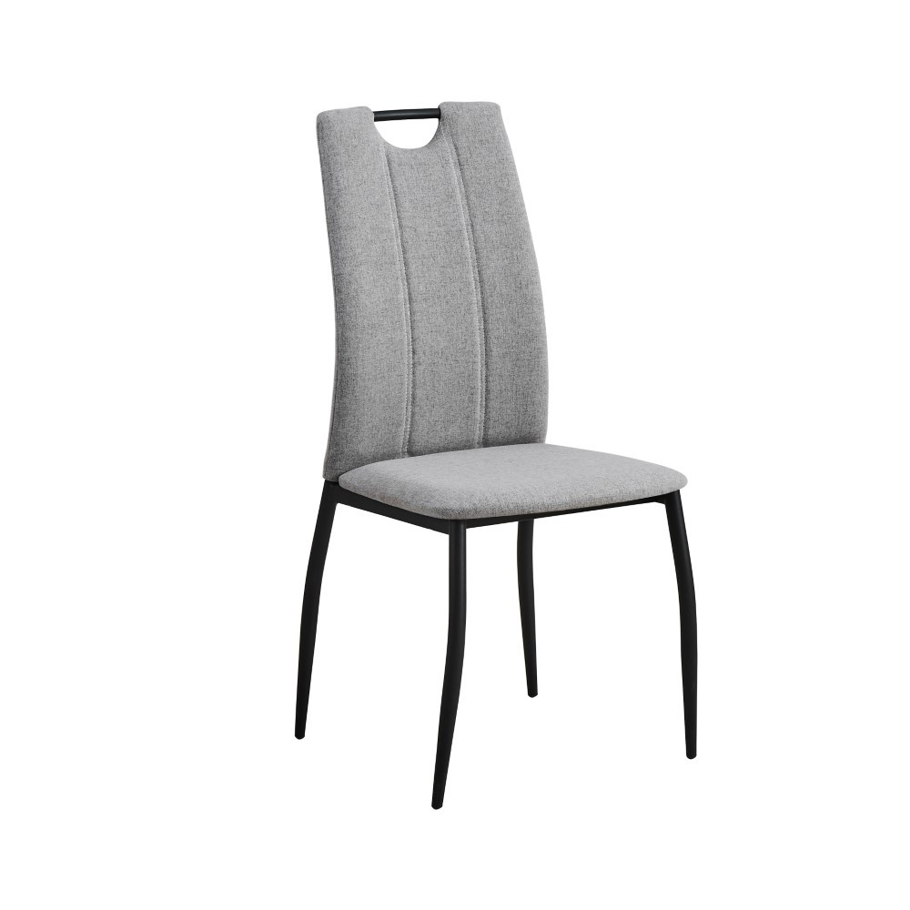 Jedilniški stol z dvodelnim podnožjem in oblazinjenjem, na voljo v več barvah. Celoten stol je debelo oblazinjen z mehko tkanino, tudi po rokonaslonih. Sedež stola je 9 cm debel, širok 45 cm in 44 cm globok ter na višini 53 cm. Podnožje je narejeno iz kovine, prašno lakirano v črno barvo. Maksimalna nosilnost stola je 120 kg.