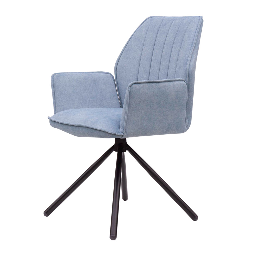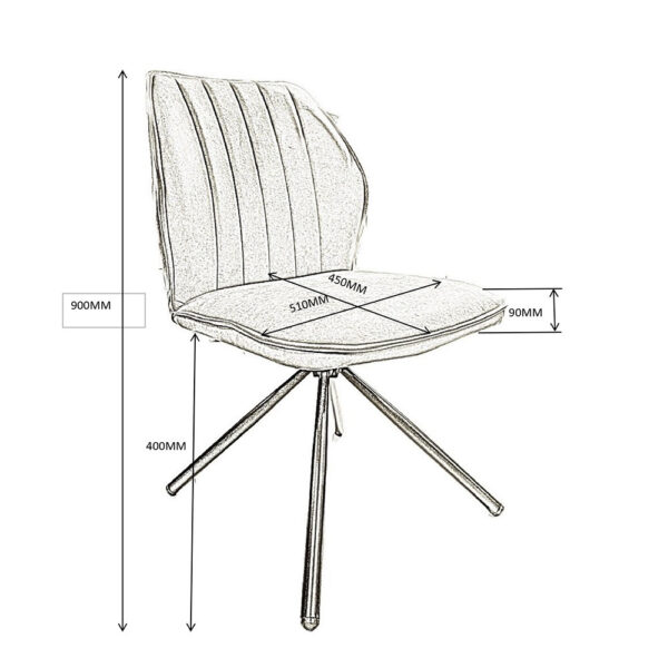 Modern jedilniški stol, ki bo s svojimi izoblikovanimi linijami in izbiro različnih barv poživel vaš dom. Stol je oblazinjen z mehko tkanino in po naslonu za hrbet prešit z okrasnimi šivi ki popestrijo videz stola. Štirinožno podnožje stola je narejeno iz kovine. Sedišče stola je globoko 45 cm in je 9 cm debelo. Maksimalna nosilnost stola je 120 kg.