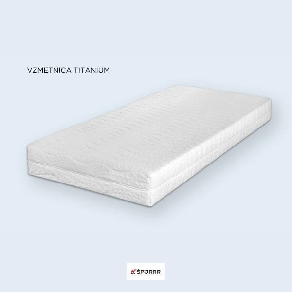 Titanium je robustno, trdo ležišče s 7 – conskim žepkastim jedrom, ki zagotavlja trdo a hkrati prilagodljivo spalno podlago. Na obeh straneh jedra je dodan sloj trših polnil. Primerno zlasti za ljudi, ki imajo radi trdo spalno podlago, imajo težave s hrbtenico, prekomerno telesno težo. Vzmetnica ima snemljivo in pralno prevleko, prešito z antialergijskim polnilom, kar nam omogoča, da vzdržujemo čisto spalno okolje. Zaradi klasične višine, je samo ležišče lahkotno in prijazno do uporabnika. Z rednim obračanjem vzmetnice vertikalno in horizontalno, podaljšamo življenjsko dobo izdelka. Vzmetnica je spalna obojestransko.