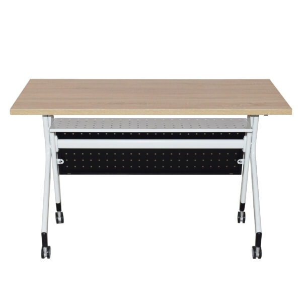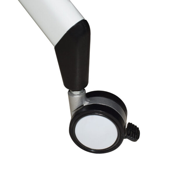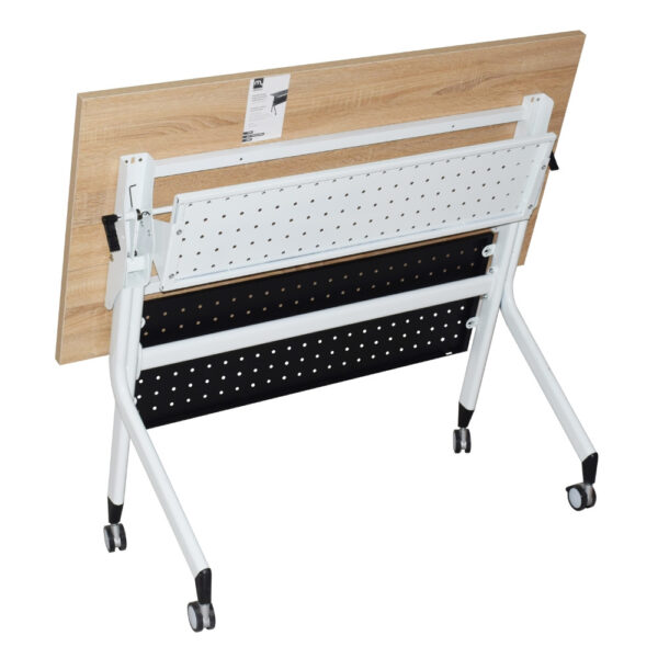 Praktična pisalna miza na kolescih, z nagibnim namizjem.  Izdelana je iz kovinskega profila in visokokakovostne iverne plošče, oblečene v melamin. Debelina plošče je 25 mm. Kovinske noge so prašno lakirane v beli barvi in opremljene s kolesci za preprosto premikanje mize. Pod namizno ploščo se nahaja še dodatna polica, na katero lahko odlagate svoje stvari, ne da bi vas te motile pri delu. Tako plošča kot dodatna polica se lahko pomakneta diagonalno. Delovna površina namizja meri 100 x 60 cm, v višini 75 cm.  Največja nosilnost namizja je 45 kg.