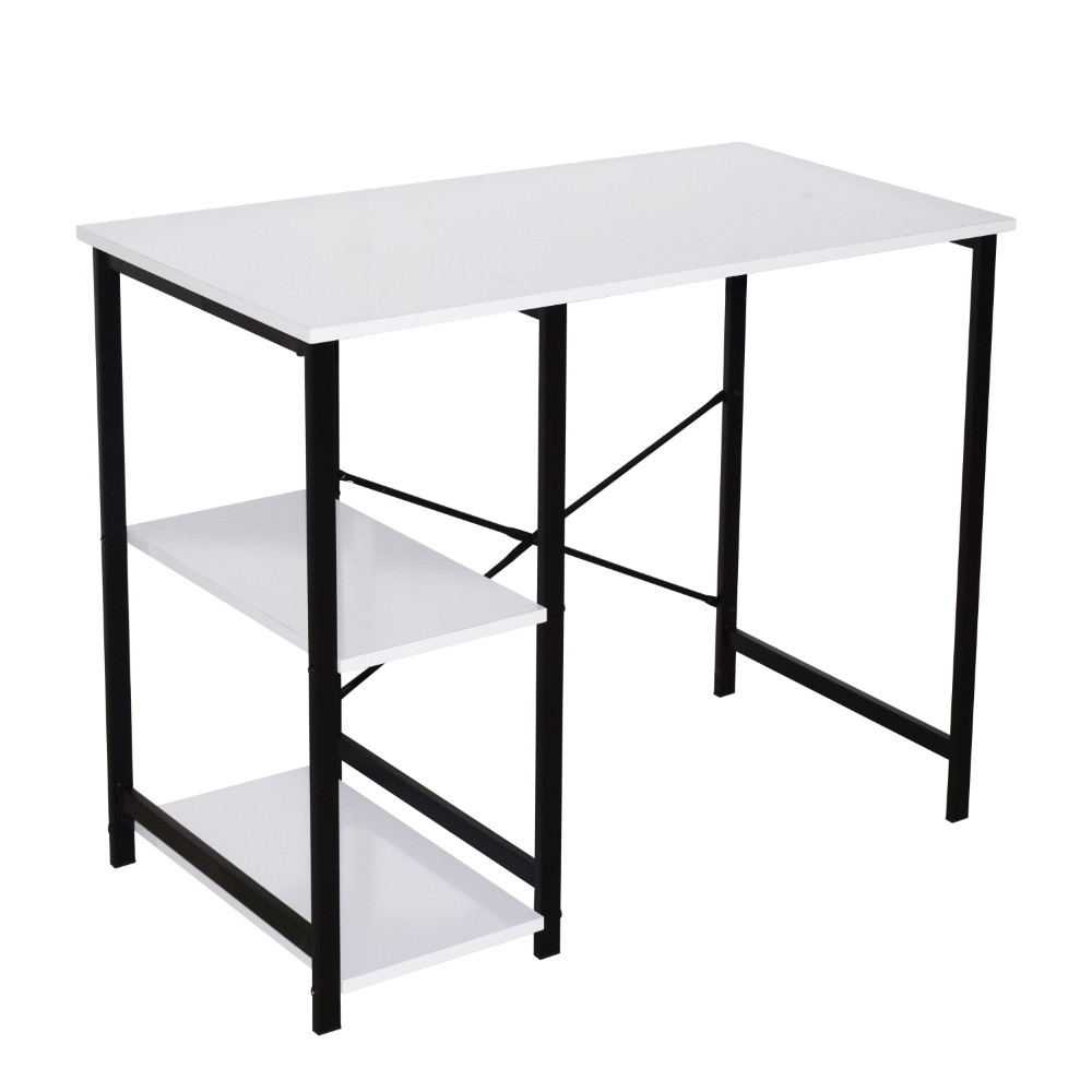 Minimalistična pisalna miza ki združi sodoben dizajn s klasičnim stilom. Izdelana je iz visokokakovostnih ivernih plošč, oblečenih v PVC. Debelina plošče je 25 mm. Kovinske noge so prašno lakirane v beli barvi, velikosti 20×20 mm in debeline 0,6 mm. Delovna površina je velika 120x 60 cm, na višini 76 cm, s površino v imitaciji orehovega lesa. Na desni strani pod namizjem sta dva predala bele barve, s kovinskimi vodili. Maksimalna nosilnost mize je 45 kg.