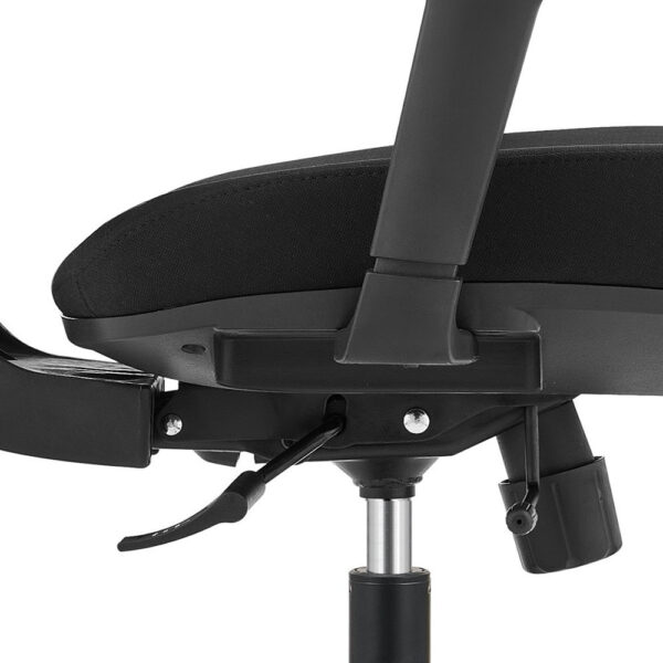 Ergonomičen pisarniški stol v črni barvi, primeren za pisarno prihodnosti!  Stol je vrtljiv in nastavljiv po višini, s plinskim mehanizmom v glavnem stebričku, poleg tega pa ponuja tudi več drugih možnosti za prilagajanje. Hrbtišče stola je izdelano iz najlona in oblazinjeno z mrežasto tkanino ki prepušča zrak. Opremljeno je z mehanizmom ki omogoča da se lahko samo hrbtišče nastavlja po višini neodvisno od glavnega plinskega mehanizma.
