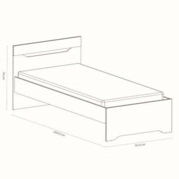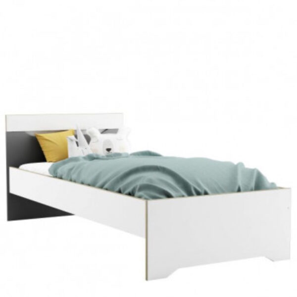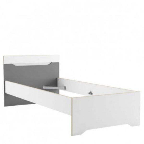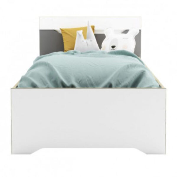 Otroška postelja je narejena iz iverala, v prevladujoči beli barvi, ki jo dopolnjuje trendovska siva barva vzglavja. Robovi so zaključeni v dekoraciji lesnega vzorca. Postelja je prilagodljiva, uporabite jo lahko za vzmetnico dimenzije 90×200 ali 90×190 cm. Postelja ima visoko vzglavje v kombinaciji obeh barv. Vzmetnica in letveno dno nista vključena. K postelji lahko dokupite tudi shranjevalni predal, ki lahko služi kot dodatna shramba ali ležišče. Maksimalna nosilnost je 100 kg.