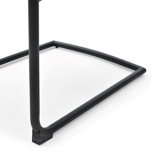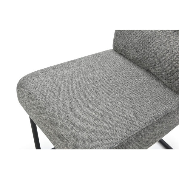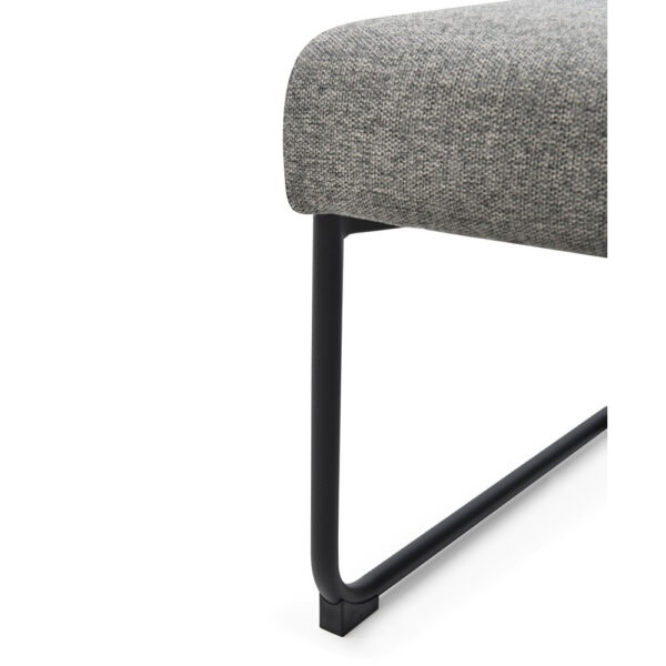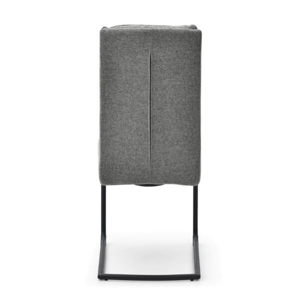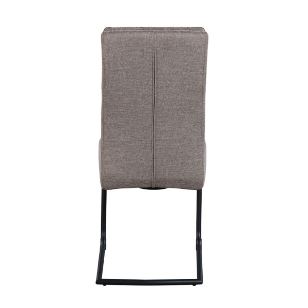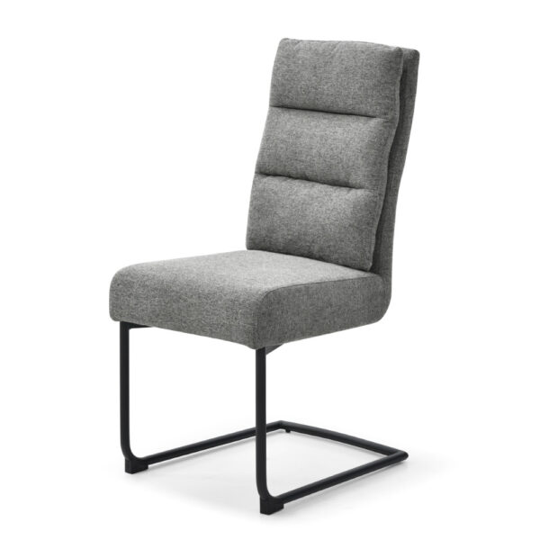 Jedilniški stol, opremljen z vzmetenjem in oblazinjen s tkanino, na voljo v več barvah. Po naslonjalu ima dve plasti oblazinjenja, z zunanjo plastjo prešito z okrasnimi šivi za lepši izgled. Sedišče stola je široko 42 cm, globoko 41 cm in je opremljeno z bonell vzmetmi za bolj udobno sedenje. Naslon za hrbet je visok 52 cm in širok 38 cm. Podnožje stola, v obliki sani, je narejeno iz kovinskih cevi, prašno lakiranih za boljšo zaščito. Maksimalna nosilnost stola je 120 kg.